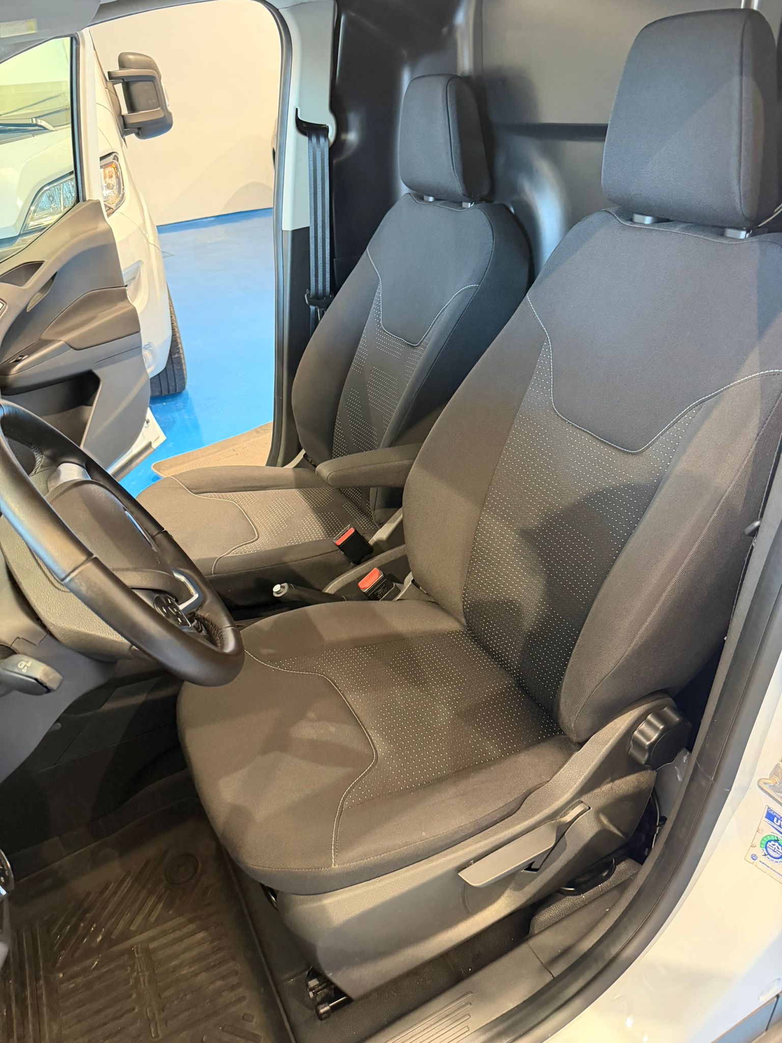 Cabina de 2 plazas: Espaciosa y cuidada, con asientos regulables (el del conductor con ajuste lumbar) y una visibilidad excelente gracias a su luna delantera profunda.